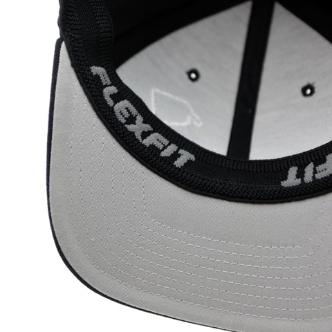 Genuine Flex Fit cap with the Summit Point Main circuit ouitline embroidered in white on the left panel of the front. Black color. Choose from Small-Medium or Large-XL size.