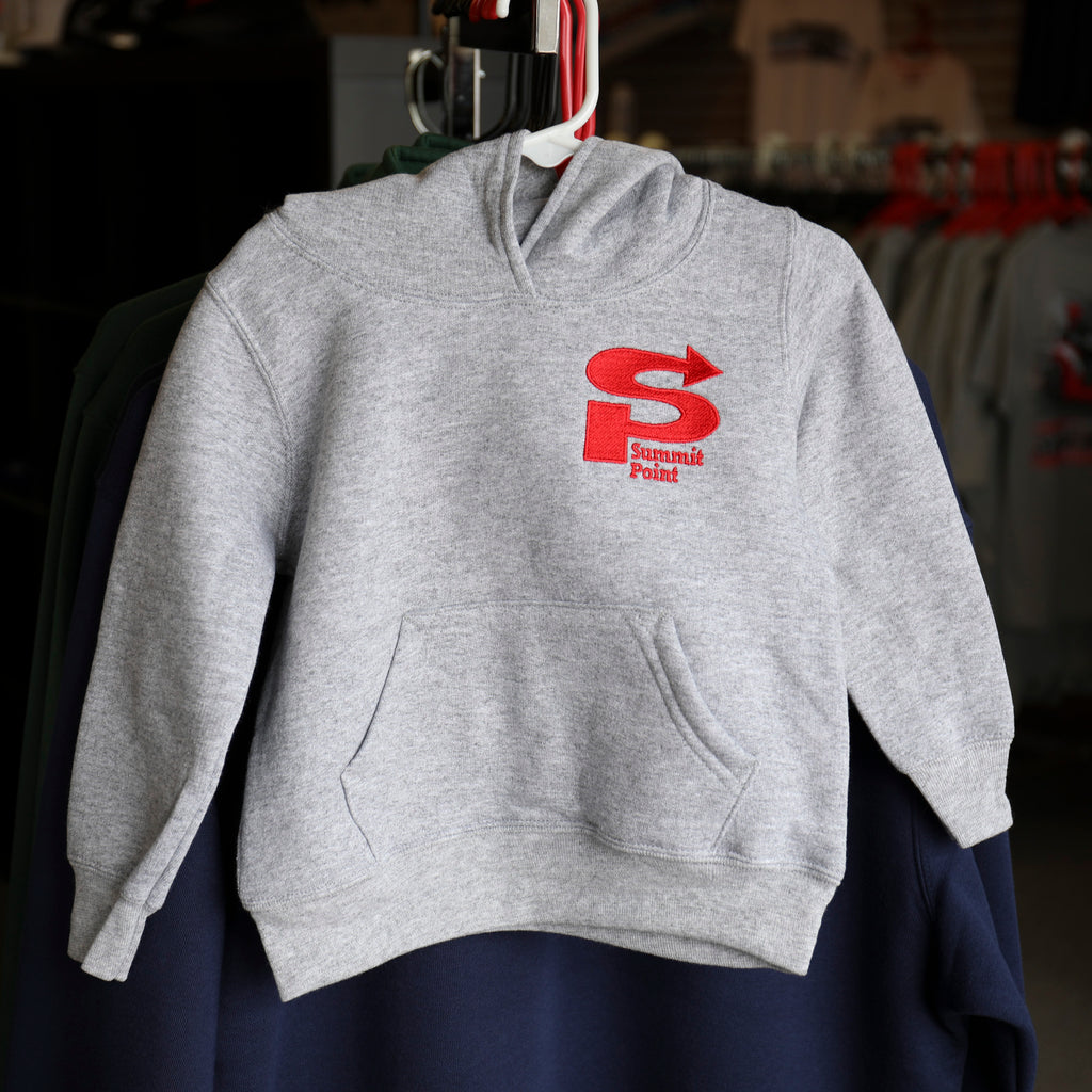 So cute! Pullover fleece hoodie with embroidered red Summit Point classic logo. The cutest little hand pockets on the front, too.